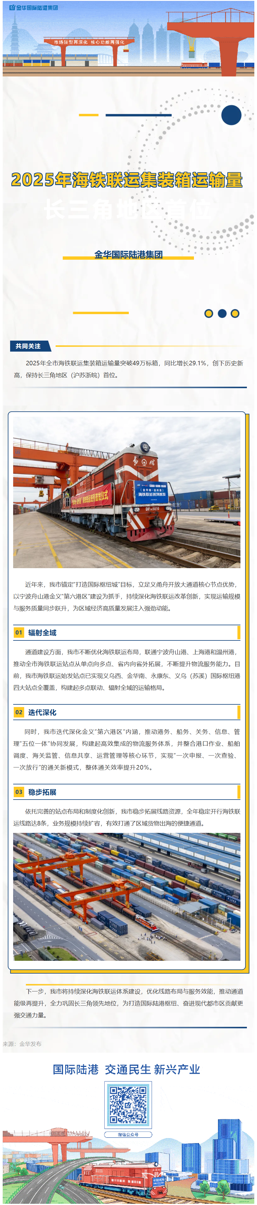 金華海鐵聯(lián)運(yùn)保持長(zhǎng)三角首位!2025年集裝箱運(yùn)輸量超49萬(wàn)標(biāo)箱